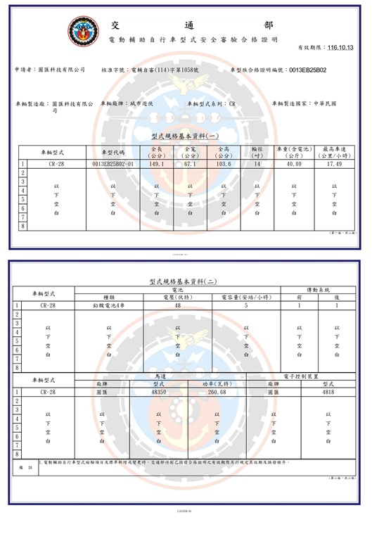 鋰電池 /續航力約 40公里 整車(含電池)售價:36,800元